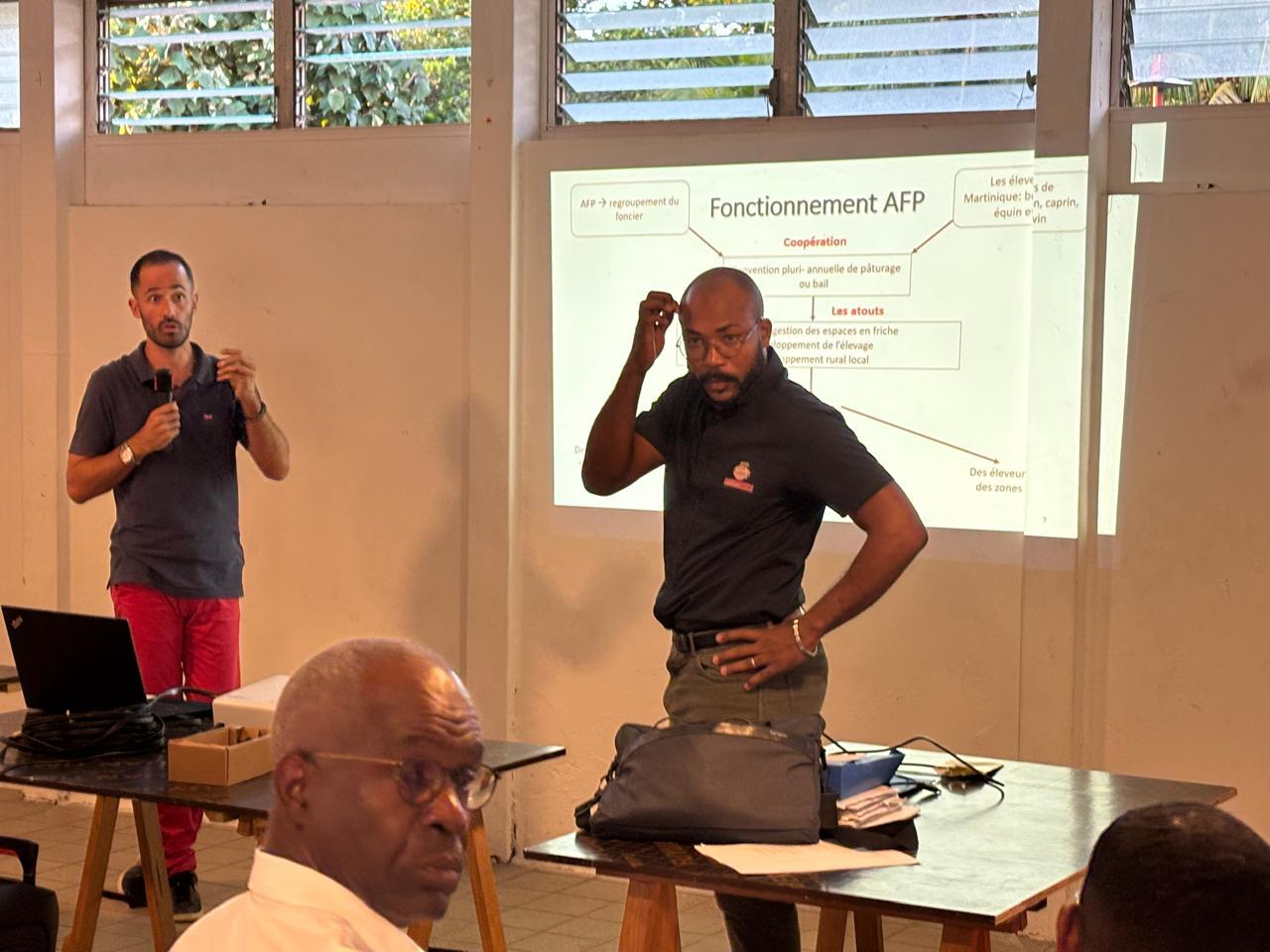 Carbet – 30 oct. 2025. Réunion publique relative à la création d’une Association Foncière Pastorale (AFP) dans le Nord Caraïbe à l’initiative de la CODEM, de CAPNORD, de la DAAF et de la Ville du Carbet. Face à ces institutions, des propriétaires fonciers particulièrement remontés dans un contexte de suspicion réciproque et d’accaparement de terres alimentée par l’ASSAUPAMAR fortement représentée ce soir. Malgré les propos rassurants des instigateurs de cette AFP, les Carbétiens présents ont manifesté, parfois avec véhémence et colère, leur désapprobation d’un tel projet pour lequel ils ont la désagréable impression d’être mis devant le fait accompli.