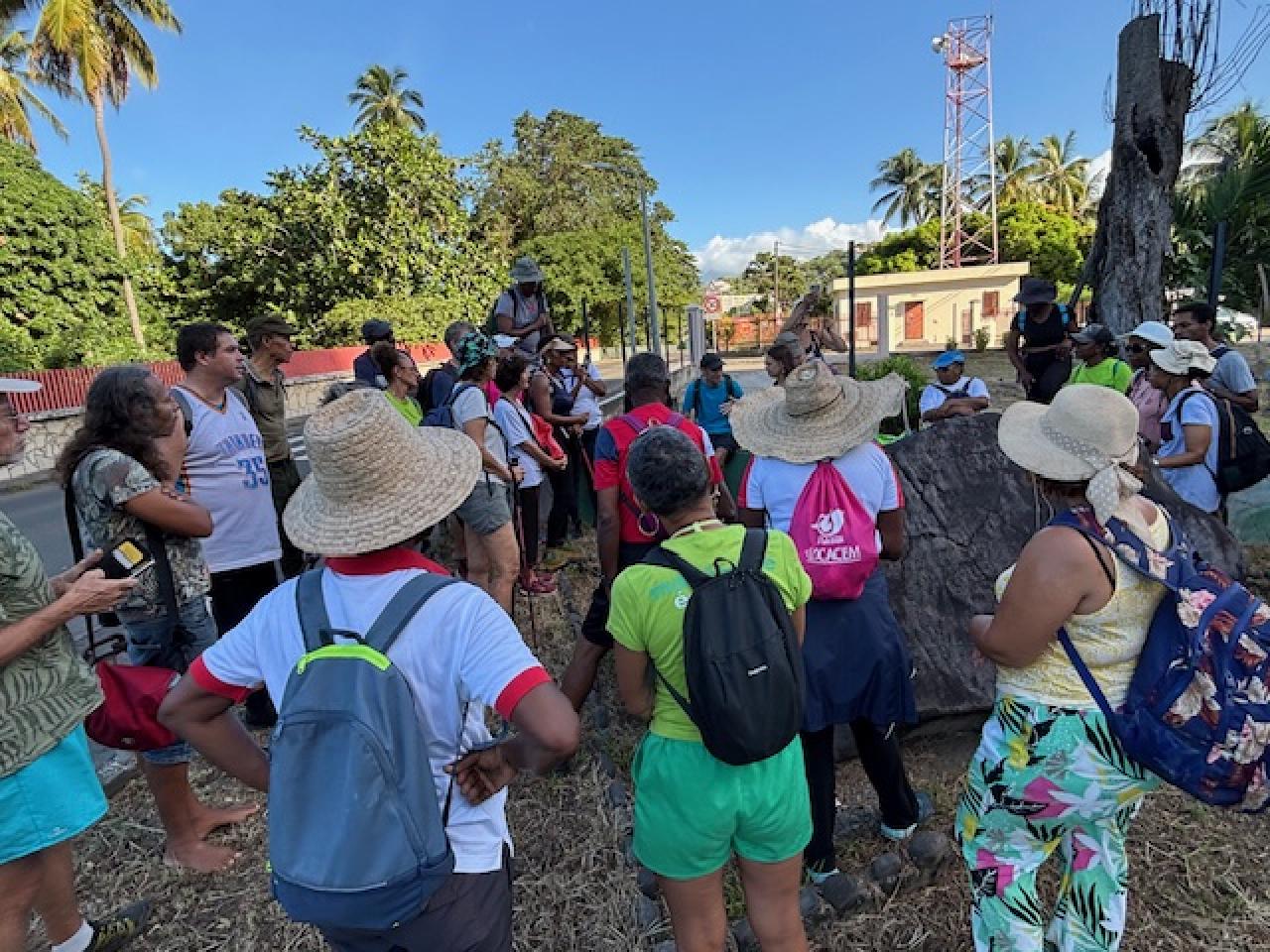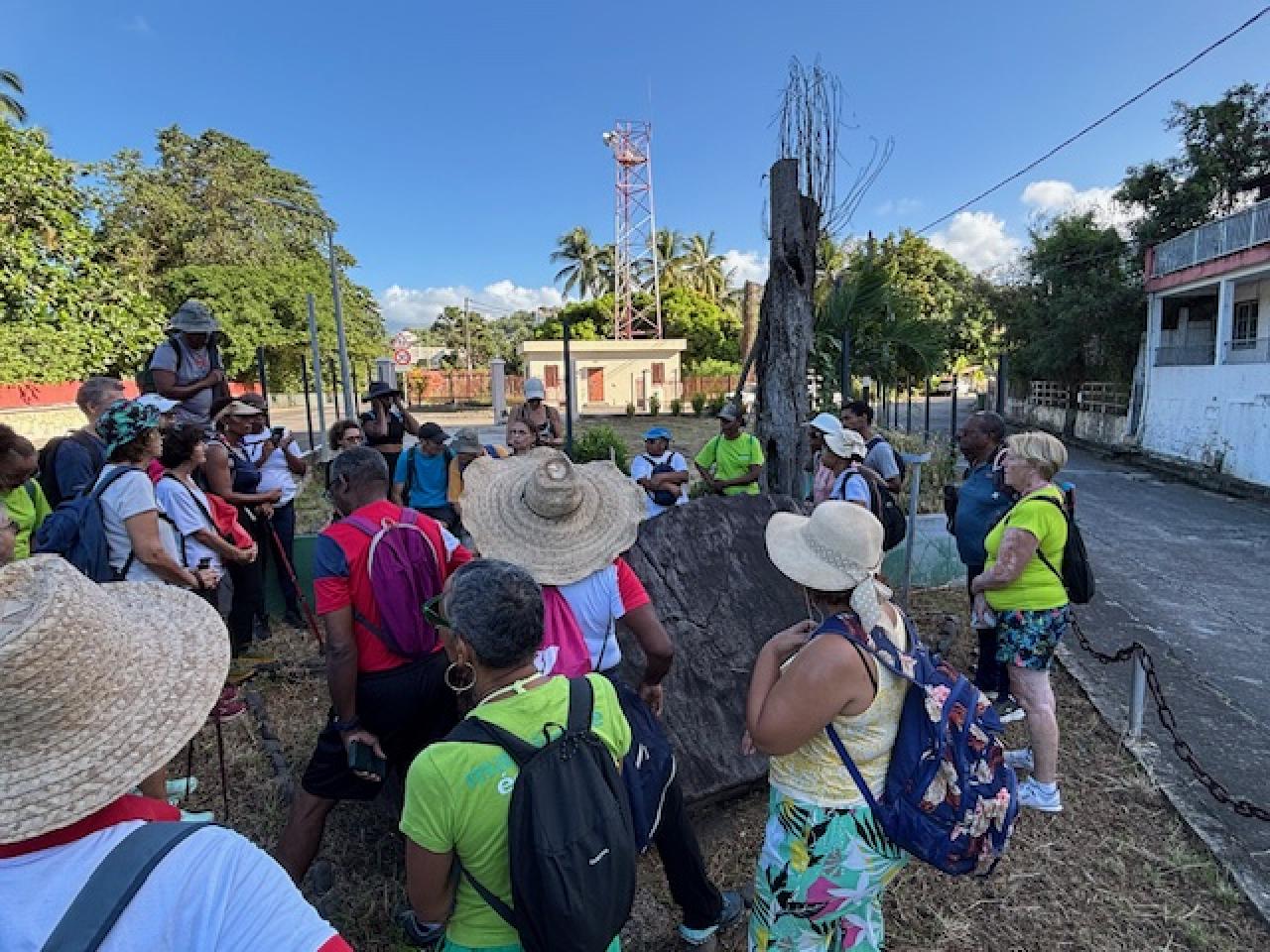Carbet, à chacun sa commémoration ! En ce mardi de l’an 2025, jour de l’Armistice du 11 novembre 1918, l’horloge du temps s’est mise à reculer pour notre groupe de randonneurs sur les traces de nos ancêtres amérindiens à travers les paysages exceptionnels de l’arrière-pays du Carbet. Derrière cet éponyme se cache en effet l’empreinte indélébile d’une histoire tragique  souvent refoulée de nos mémoires mais bien vibrante et ancrée dans notre quotidien. Anthropologue et professeur au Lycée de Bellevue, Marie-Line MOURIESSE est  venue pour la circonstance en renfort de MARTINIQUE-ÉCOLOGIE partageant son intérêt pour l’étude de cette civilisation amérindienne tout en rappelant son apport indéniable aux cultures contemporaines.