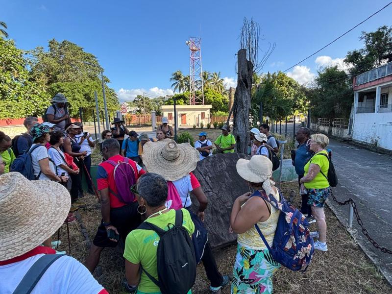 Carbet, à chacun sa commémoration ! En ce mardi de l’an 2025, jour de l’Armistice du 11 novembre 1918, l’horloge du temps s’est mise à reculer pour notre groupe de randonneurs sur les traces de nos ancêtres amérindiens à travers les paysages exceptionnels de l’arrière-pays du Carbet. Derrière cet éponyme se cache en effet l’empreinte indélébile d’une histoire tragique souvent refoulée de nos mémoires mais bien vibrante et ancrée dans notre quotidien. Anthropologue et professeur au Lycée de Bellevue, Marie-Line MOURIESSE est venue pour la circonstance en renfort de MARTINIQUE-ÉCOLOGIE partageant son intérêt pour l’étude de cette civilisation amérindienne tout en rappelant son apport indéniable aux cultures contemporaines.