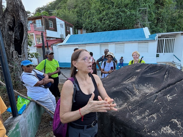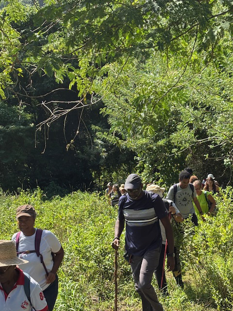 Carbet, à chacun sa commémoration ! En ce mardi de l’an 2025, jour de l’Armistice du 11 novembre 1918, l’horloge du temps s’est mise à reculer pour notre groupe de randonneurs sur les traces de nos ancêtres amérindiens à travers les paysages exceptionnels de l’arrière-pays du Carbet. Derrière cet éponyme se cache en effet l’empreinte indélébile d’une histoire tragique  souvent refoulée de nos mémoires mais bien vibrante et ancrée dans notre quotidien. Anthropologue et professeur au Lycée de Bellevue, Marie-Line MOURIESSE est  venue pour la circonstance en renfort de MARTINIQUE-ÉCOLOGIE partageant son intérêt pour l’étude de cette civilisation amérindienne tout en rappelant son apport indéniable aux cultures contemporaines.